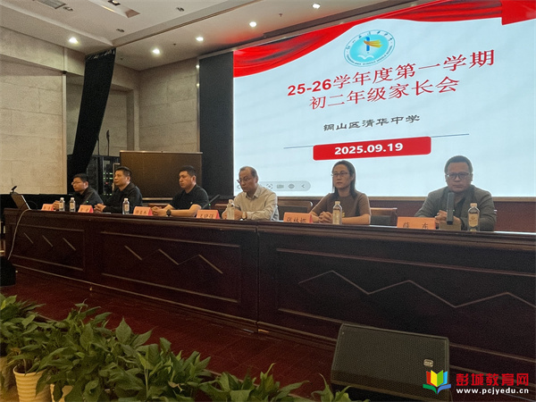 2025 年 9 月 20 日下午 16:00,銅山區(qū)清華中學(xué)初二年級家長講座在學(xué)校大禮堂如期開展。本次講座以家校協(xié)同育人為核心,為家長搭建學(xué)習(xí)交流平臺,活動由政教處薛東主任全程主持。