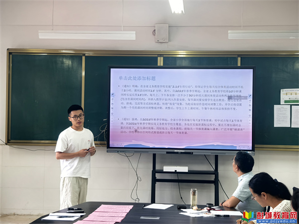 體育組組長韋意波老師及時向全體教師傳達了省教育廳關(guān)于“2·15專項行動”的文件精神。他從專項行動的背景意義、主要內(nèi)容到具體實施要求,進行了細致解讀。