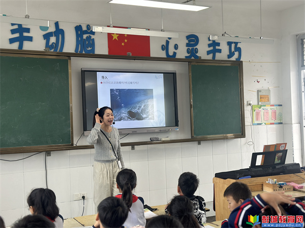 課堂伊始,劉老師以“大海的聲音”為切入點(diǎn),通過(guò)播放海浪、螺號(hào)的音頻,帶領(lǐng)學(xué)生走進(jìn)充滿童趣的“海洋世界”,瞬間激發(fā)了學(xué)生的學(xué)習(xí)興趣。隨后,她結(jié)合生動(dòng)的肢體動(dòng)作,引導(dǎo)學(xué)生聆聽歌曲旋律,感受歌曲歡快活潑的情緒,讓學(xué)生在輕松的氛圍中熟悉了歌曲節(jié)奏。