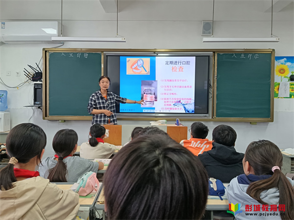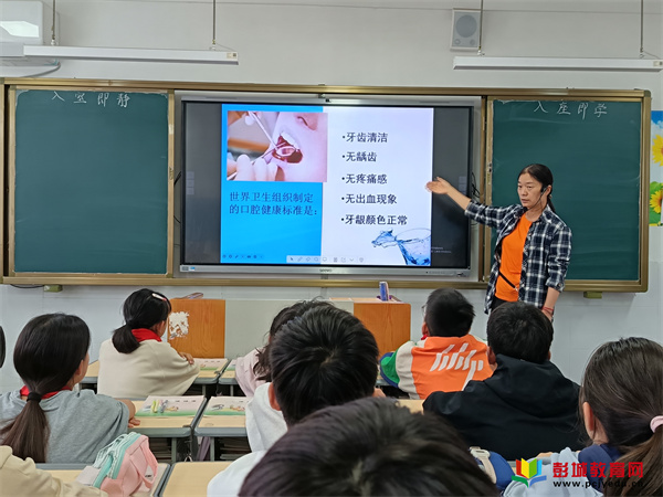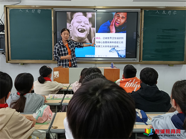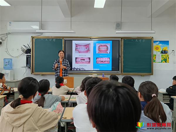 活動中,老師通過生動的PPT課件,從牙齒的生長知識講起,向學生們介紹了人的一生兩次長牙(乳牙和恒牙)的特點,重點強調了恒牙脫落無法再生的重要性。同時,老師還圍繞飲食與口腔健康的關系展開講解,倡導學生多吃蔬菜水果,減少糖果、甜點等含糖食品的攝入,讓學生明白合理飲食對保護牙齒的關鍵作用。