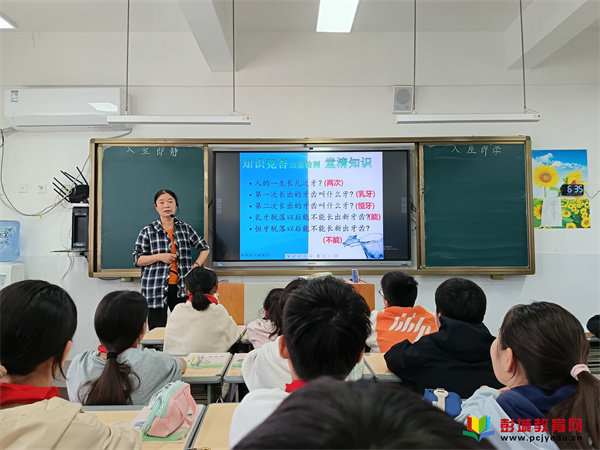 在口腔護理知識環(huán)節(jié),老師詳細演示了正確的刷牙方法,講解了如何選擇“刷頭較小、刷毛軟硬適中、經過磨毛處理”的牙刷,并列舉了促進口腔健康的多種方法,如早晚刷牙、飯后漱口、使用牙線、定期口腔檢查等。此外,老師還結合人工種植牙的知識,讓學生進一步認識到保護天然牙齒的重要性。