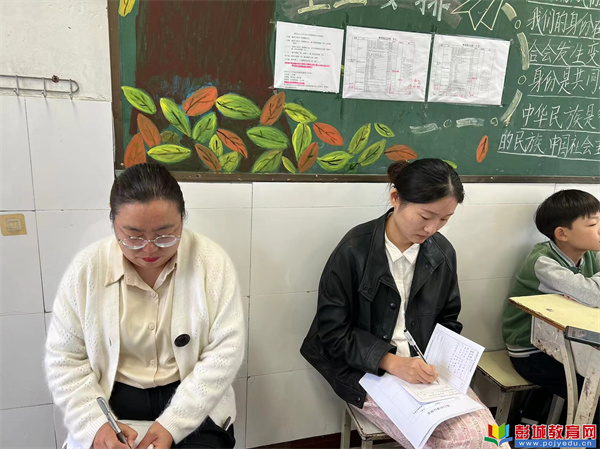聽(tīng)課結(jié)束后,檢查組同步開(kāi)展備課和檢查,重點(diǎn)查看教案二次備課的實(shí)用性和作業(yè)批改的規(guī)范性,對(duì)臺(tái)上小學(xué)教師業(yè)務(wù)提出許多中肯的建議與整改方案。最后,聽(tīng)課小組與授課教師開(kāi)展“面對(duì)面”的深度研討,形成“聽(tīng)-評(píng)-改”閉環(huán)。
