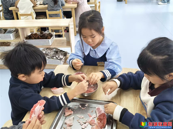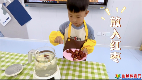 中班組:冰糖雪梨。在老師的指導(dǎo)下,孩子們認(rèn)識(shí)了銀耳、紅棗、雪梨和枸杞這些潤(rùn)肺佳品,小心翼翼地清洗、剝核、切小塊。當(dāng)清甜的雪梨香和紅棗的暖香在教室里彌漫開來,孩子們的臉上寫滿了期待與成就感。品嘗著自己參與制作的溫潤(rùn)甜羹,不僅暖了身體,更在勞動(dòng)中體會(huì)到了收獲的甜蜜與分享的快樂。