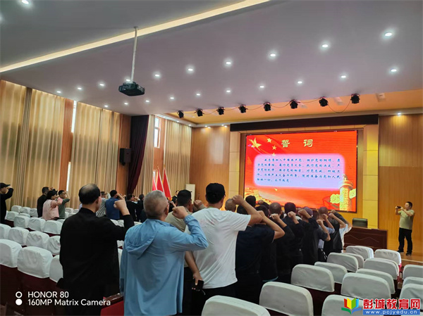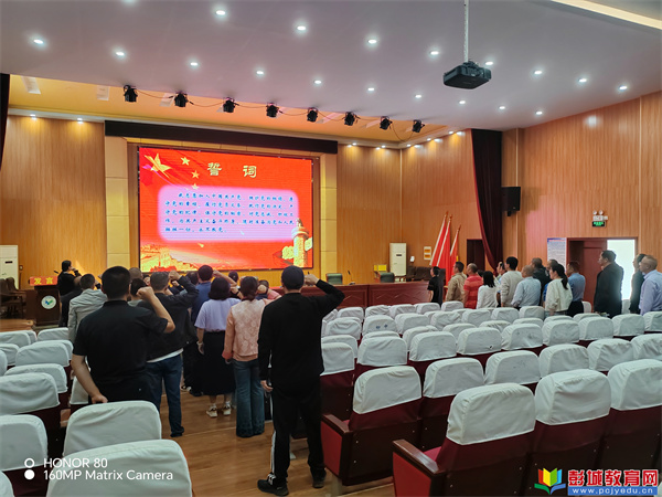 伴隨著莊嚴的《國際歌》,全體面向黨旗莊嚴宣誓,進一步凝聚“堅定不移跟黨走、以德為本育新人”的共識,以抗戰(zhàn)精神賦能教育事業(yè),切實落實立德樹人根本任務。