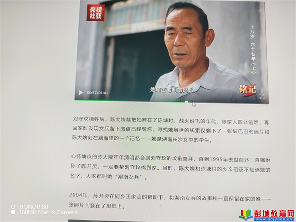 首先,全體黨員校干一起觀看了CCTV-10央視科教頻道的《銘記——十八歲 六十七年》——采訪柳新中學退休教師陳開靈關于抗日英烈劉守玟的故事。這是一曲中華民族最柔軟也最堅強的頌歌,黨員、校干深受感動。