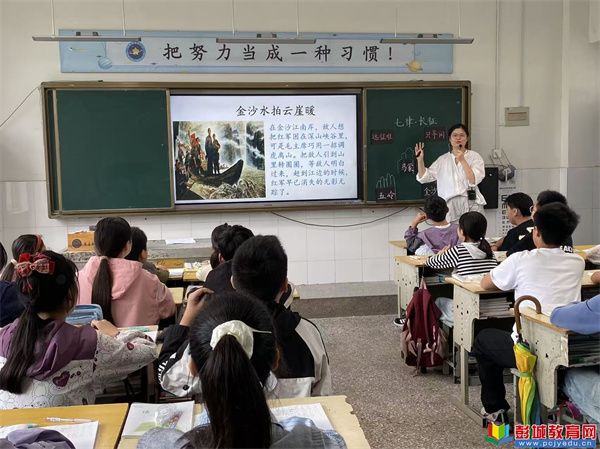 六年級(jí)的張老師則以“地圖上的詩(shī)詞”為線(xiàn)索,講授了《七律·長(zhǎng)征》。她引導(dǎo)學(xué)生將詩(shī)詞中的“五嶺”“金沙”“大渡橋”與長(zhǎng)征路線(xiàn)圖一一對(duì)應(yīng),化抽象的言語(yǔ)為壯闊的畫(huà)面。在朗朗的誦讀聲中,學(xué)生們感受到了“紅軍不怕遠(yuǎn)征難”的豪情。張老師適時(shí)回溯:“這種不畏萬(wàn)難、信念堅(jiān)定的精神,與我們之前學(xué)習(xí)的藺相如、廉頗的哪些品質(zhì)有異曲同工之妙?” 由此,將兩篇課文的精神內(nèi)涵有機(jī)貫通。