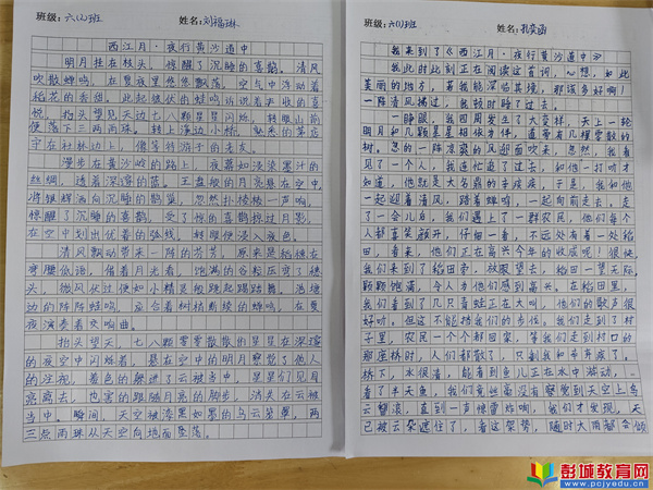 為弘揚(yáng)中華優(yōu)秀傳統(tǒng)文化,激發(fā)學(xué)生對古典詩詞的熱愛與創(chuàng)作熱情,近日,房村鎮(zhèn)中心小學(xué)六年級(jí)舉辦了一場以經(jīng)典詞作《西江月·夜行黃沙道中》為主題的作文比賽,同學(xué)們以筆為舟,在詩詞的海洋中暢游,書寫著屬于自己的詩意篇章。