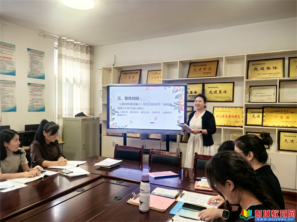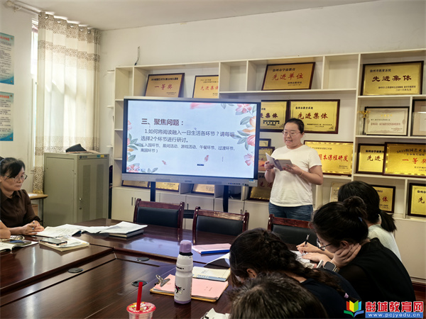 “聚焦問題”環(huán)節(jié)是本次教研的核心亮點。全體教師以小組為單位,每組自主選取2個重點環(huán)節(jié)(入園、晨間活動、游戲活動等),結(jié)合《3--6歲兒童學(xué)習(xí)與發(fā)展指南》、《幼兒園語言領(lǐng)域教育精要》核心理念及園本課程要求,圍繞“如何將閱讀有效融入環(huán)節(jié)”這一議題開展深度研討。各小組充分激活團隊協(xié)作效能,結(jié)合前期觀摩經(jīng)驗與本班實踐案例,提煉出一系列可落地、可復(fù)制的優(yōu)化策略,各小組選派代表登臺匯報研討成果,系統(tǒng)分享優(yōu)化策略與實踐思路。