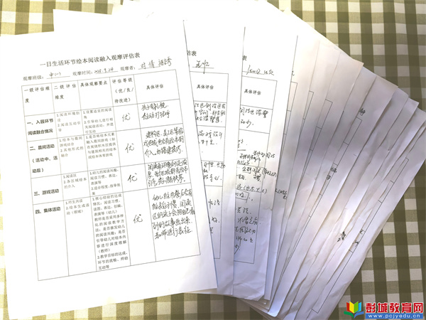 教研活動啟動前,全體教師按年級組劃分為若干觀察組,依據(jù)《一日生活環(huán)節(jié)繪本閱讀融入觀摩評估表》,深入小、中、大各年齡段班級,對入園、晨間活動、游戲活動、集體活動、午餐、午睡、戶外活動、離園八大環(huán)節(jié)展開全方位觀摩。過程中,教師們切換“觀察者”與“研究者”雙重身份,重點追蹤各環(huán)節(jié)中閱讀的融合形式、幼兒參與狀態(tài)及教師引導(dǎo)策略,詳實記錄不同年齡段在閱讀融合中的亮點實踐與待解問題。