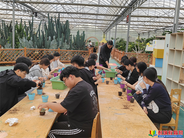 另一邊,多肉植物栽培組的學(xué)生們則沉浸在多肉植物的“小世界”里。在栽培區(qū)域,擺放著各種各樣的多肉植物幼苗、花盆、土壤及工具。學(xué)生們親自動(dòng)手栽培,將多肉植物幼苗植入花盆中,