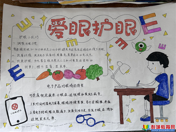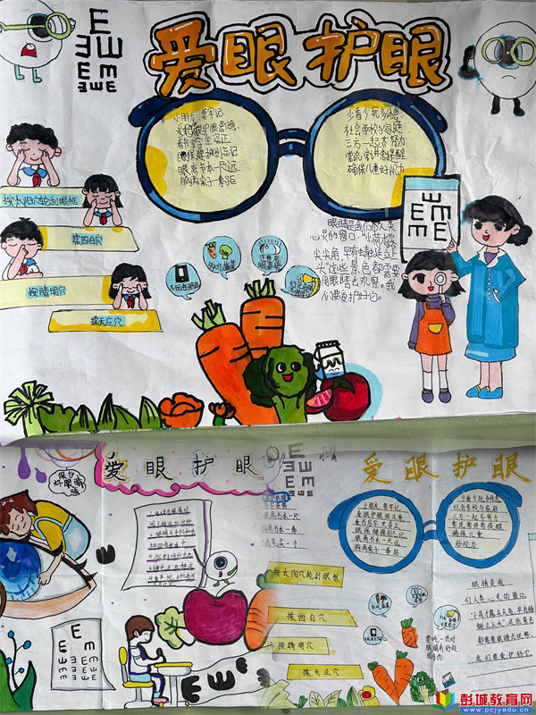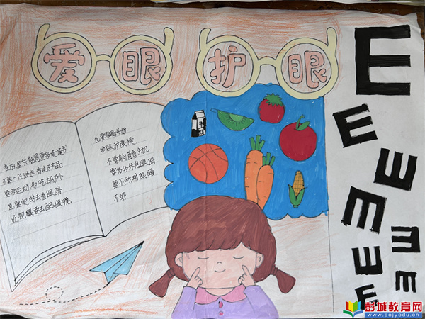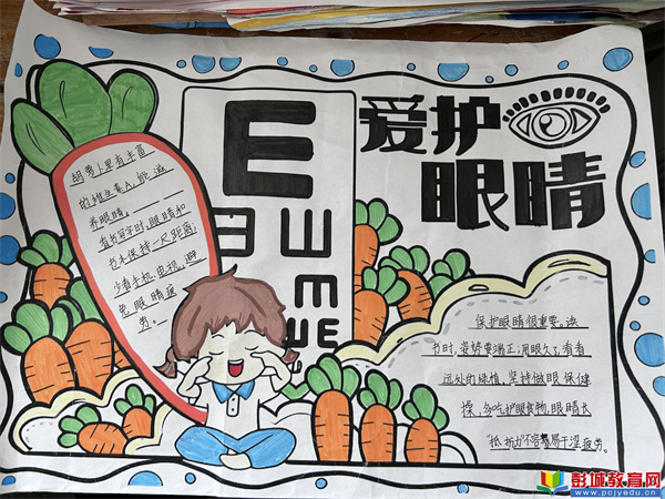 活動(dòng)中,全校師生積極參與,各班級學(xué)生在班主任及美術(shù)教師的指導(dǎo)下,圍繞近視形成的原因、危害、預(yù)防措施等內(nèi)容,充分發(fā)揮想象力和創(chuàng)造力,精心設(shè)計(jì)制作了一份份主題鮮明、圖文并茂的手抄報(bào)。有的同學(xué)用生動(dòng)形象的漫畫描繪長時(shí)間近距離用眼的危害;有的班級通過對比數(shù)據(jù)直觀展現(xiàn)近視率上升的趨勢;還有的作品詳細(xì)列舉了“一拳一尺一寸”的正確讀寫姿勢,并配以朗朗上口的口訣。每一幅作品都凝聚著孩子們的智慧與用心,色彩鮮艷的畫面、工整清晰的文字、富有創(chuàng)意的設(shè)計(jì),讓原本抽象的健康知識(shí)變得鮮活有趣。