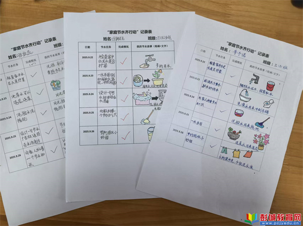 “節(jié)約行動我最行”實(shí)踐階段同樣精彩紛呈。學(xué)生們每天記錄家庭或?qū)W校的節(jié)水用電行為,如“今天我隨手關(guān)了衛(wèi)生間的水龍頭”等。