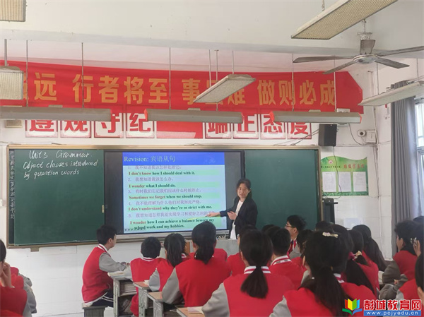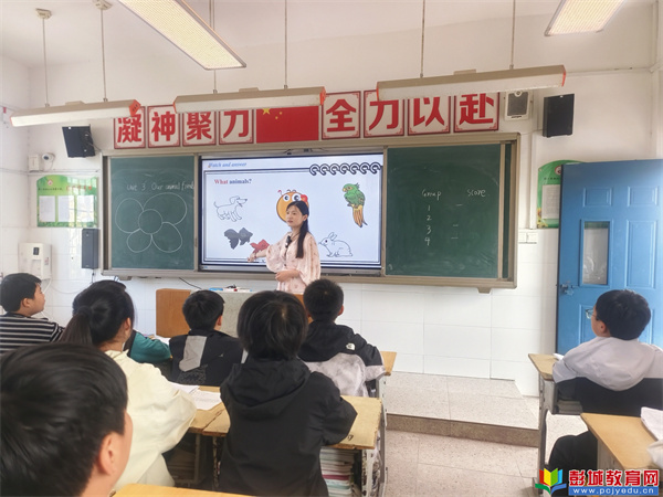 隨后教研員楊老師和我校英語組教師,在第二節(jié)課和第三節(jié)課分別觀摩了許智芹老師和張慧玲老師的課。在課堂上,許老師帶領九(5)班學生在課堂上圍繞“Object clauses”這個主題,創(chuàng)設生動有趣的圖片、情境對話等多種形式鞏固新知,充分調動了學生的學習積極性,讓學生感受了學習英語語法的樂趣。張老師與七(2)班的孩子們,共同圍繞“Our animal friends”主題進行了動物朋友的描述,帶領孩子們一起感受了人與動物之間的和諧。她通過精彩的視頻,有趣的板書和多樣的活動讓學生充分參與課堂活動,展現(xiàn)了接地氣的課堂。