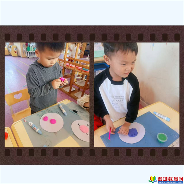 活動中,孩子們在老師的引導(dǎo)下,將圓圓的白色卡紙當(dāng)作“月餅底盤”,用彩色黏土塑造出一個個憨態(tài)可掬的“月餅小人”。這些小人有的是紅藍(lán)配色,像在玩有趣的游戲;有的是粉嫩一家人,手拉手盡顯溫馨;還有的是多彩小團(tuán)隊,在“月餅”上開啟歡樂派對……孩子們用黑色畫筆為小人添上靈動的五官和四肢,讓每一個“月餅小人”都擁有了獨特的個性。