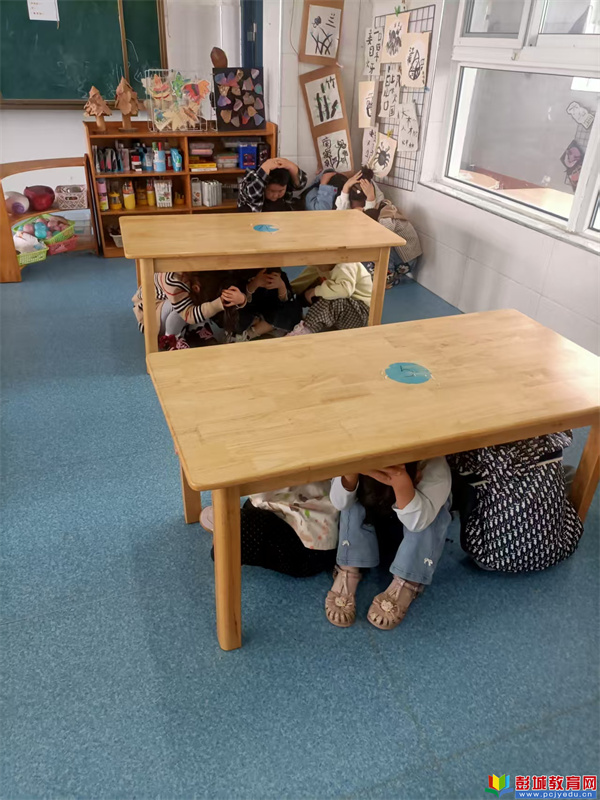 隨著急促的地震警報(bào)聲響起,演練正式拉開帷幕。老師們迅速做出反應(yīng),引導(dǎo)孩子們用雙手護(hù)住頭部,躲在桌子底下,進(jìn)行緊急避險(xiǎn)。