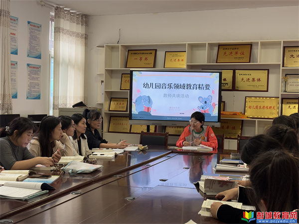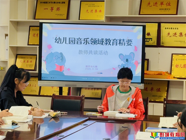 ??9月26日中午,在沙主任的帶領(lǐng)下,團(tuán)結(jié)幼兒園全體教師對(duì)《幼兒園音樂領(lǐng)域教育精要——關(guān)鍵經(jīng)驗(yàn)與生活指導(dǎo)》進(jìn)行共讀。