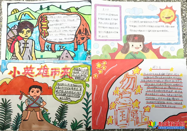 創(chuàng)作過程中,班級(jí)里掀起“尋英雄、畫英雄、頌英雄” 的熱潮?;蛴弥赡鄣墓P觸描繪少年英雄“英雄不怕難”的堅(jiān)定畫面;或深度探尋:以時(shí)間軸形式梳理歷史脈絡(luò),搭配“抗戰(zhàn)勝利80周年” 歷史事件;聚焦單一英雄,如在楊靖宇事跡板塊旁,配文 “樹皮充饑志不移,鐵血丹心照中華”;歌頌革命英雄劉胡蘭、戰(zhàn)斗英雄邱少云,機(jī)智勇敢小雨,視死如歸江姐……字里圖間無(wú)不追憶紅色,透漏著“傳承英雄精神” 的愛國(guó)之心。