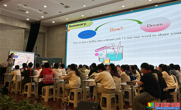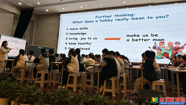 隨后,清華中學(xué)呂曉宇老師帶來Unit 2 Hobbies Reading 1的精彩課堂,盡顯閱讀教學(xué)的深度與溫度。課始,呂老師以“師問生答”為紐帶,巧妙串聯(lián)上節(jié)課所學(xué),又以“同伴對(duì)話”為載體,讓學(xué)生在暢談個(gè)人愛好的過程中,自然切入本課主題。課堂中,她創(chuàng)新性地運(yùn)用可視化圖形,如“思維地圖”般引導(dǎo)學(xué)生拆解語篇結(jié)構(gòu),再通過層層遞進(jìn)的問題,帶領(lǐng)學(xué)生探尋Daniel愛好的成因、表現(xiàn)與影響,更觸摸到他藏在愛好背后的科學(xué)夢(mèng)想。 在小組討論環(huán)節(jié),學(xué)生們圍繞“如何發(fā)展愛好”“從愛好中收獲什么”各抒己見,思想的火花在交流中碰撞。這堂課不僅是對(duì)閱讀能力的培養(yǎng),更是一次“價(jià)值引領(lǐng)”——學(xué)生在文本里讀懂的不只是一個(gè)關(guān)于愛好的故事,更讀懂了愛好對(duì)課余生活規(guī)劃的意義、對(duì)未來夢(mèng)想播種的價(jià)值。課堂設(shè)計(jì)環(huán)環(huán)相扣,如一首“邏輯與溫度交織的教學(xué)樂章”,既鍛煉了學(xué)生的思維能力,又提升了其語言表達(dá)的深度。 兩位青年教師為呈現(xiàn)這兩堂優(yōu)質(zhì)課,前期精心打磨、虛心求教,將“小初銜接”的理念融入每一個(gè)教學(xué)細(xì)節(jié),盡顯新時(shí)代教師的專業(yè)素養(yǎng)與匠心,讓人不禁期待他們未來在教壇綻放更耀眼的光芒。