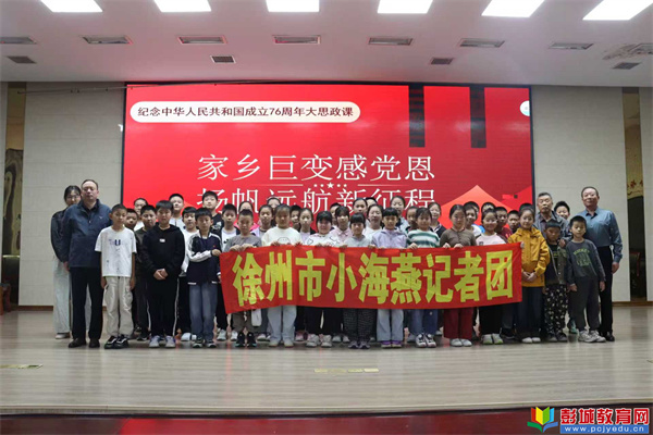 山河披錦繡,盛世寫華章。為慶祝中華人民共和國成立76周年, 9月26日上午,徐州市小海燕記者團總部與淮西中心小學少先大隊部隆重舉行以“家鄉(xiāng)巨變感黨恩,揚帆遠航新征程” 為主題的中華人民共和國成立76周年報告會,報告會特別邀請了江蘇師范大學徐文化研究中心王喬研究員擔任主講嘉賓。