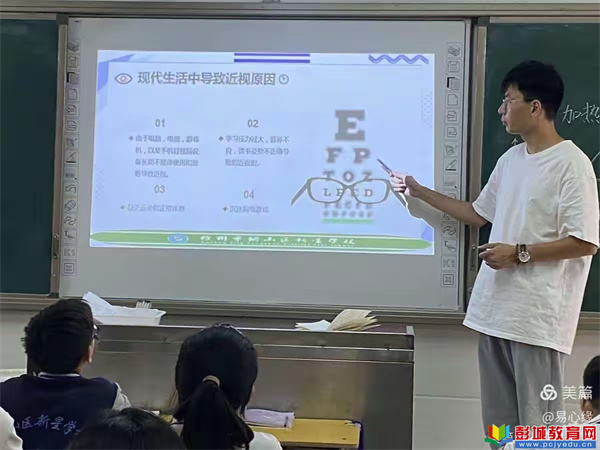 通過校園廣播、電子屏滾動播放“科學(xué)用眼,遠(yuǎn)離近視”等標(biāo)語,在教學(xué)樓走廊張貼近視防控科普海報,利用班級黑板報開辟“近視防控專欄”,營造全員關(guān)注、參與的活動氛圍。