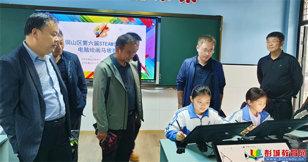 9月27日,銅山區(qū)第六屆STEAM創(chuàng)客比賽電腦繪畫比賽馬坡賽場在我校順利開展。比賽期間,市電教與裝備發(fā)展中心副主任余長營、區(qū)教師發(fā)展中心信息技術處副主任張家聲一行蒞臨現(xiàn)場,實地觀看賽事進程并指導工作,馬坡鎮(zhèn)小學中心校王后穩(wěn)校長,馬坡鎮(zhèn)中心小學趙永生校長、朱成浩副校長陪同。