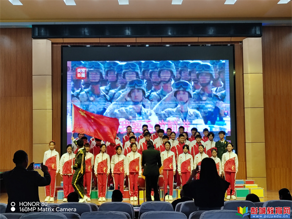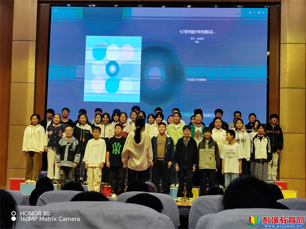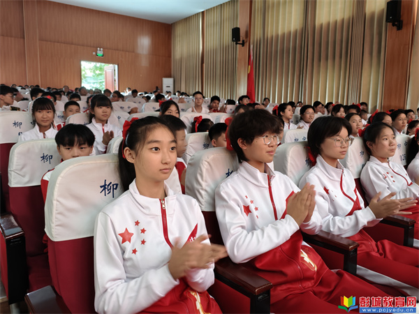 《中國少年先鋒隊隊歌》——同學們衣著整潔,儀態(tài)端莊大方,活潑歡快、充滿朝氣,旋律流暢、如隊列式前進,舉止自然、得體,展現(xiàn)了柳中少年朝氣蓬勃的精神風貌。