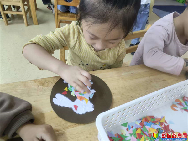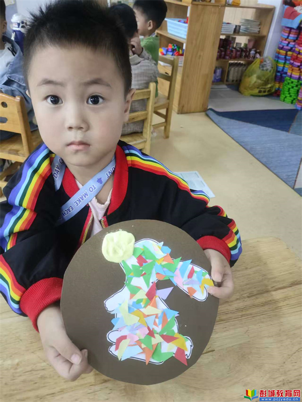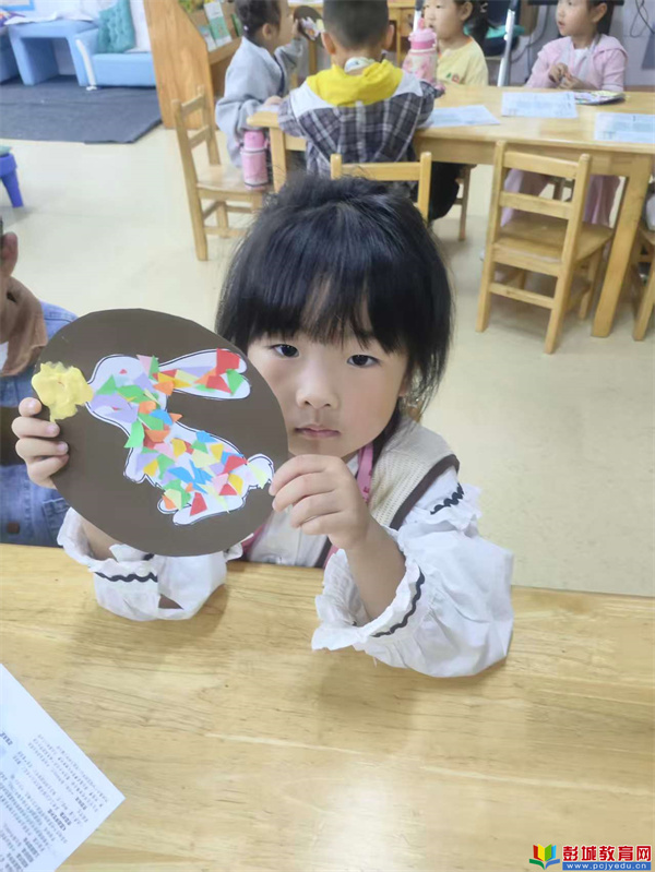 在這個溫馨的日子里,孩子們用他們的創(chuàng)意和小手,制作了一副慶祝中秋的作品——“穿花衣的小兔子”。