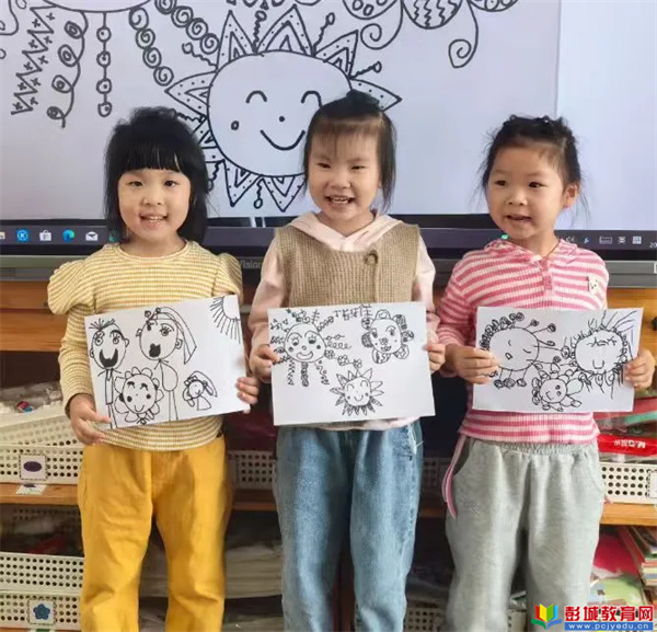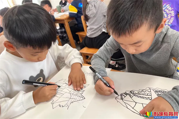 中大班的活動則圍繞“線條畫”展開,教師通過展示線條創(chuàng)作的優(yōu)秀作品、講解直線、曲線、波浪線等不同線條的特點與用法,引導幼兒發(fā)揮想象。孩子們紛紛拿起畫筆,有的用流暢的線條勾勒出可愛的小動物,有的用交錯的線條描繪出熱鬧的公園場景,還有的用富有創(chuàng)意的線條組合出充滿未來感的畫面。在創(chuàng)作過程中,教師們巡回指導,及時鼓勵幼兒大膽嘗試,尊重每一位幼兒的獨特想法,讓孩子們在自由創(chuàng)作中感受線條的魅力,提升藝術表達能力。