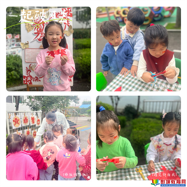 在剪紙區(qū),孩子們小手握著安全剪刀,認(rèn)真跟隨老師的示范,將紅紙折疊、勾畫、裁剪。不一會(huì)兒,一顆顆五角星、一座座天安門、一只只玉兔悄然誕生。通過(guò)親手創(chuàng)作,孩子們不僅鍛煉了小肌肉協(xié)調(diào)能力,更初步理解了對(duì)稱、圖案等概念,在剪紙的韻律中感受到非遺藝術(shù)中蘊(yùn)含的吉祥寓意與中秋團(tuán)圓的溫馨氛圍。