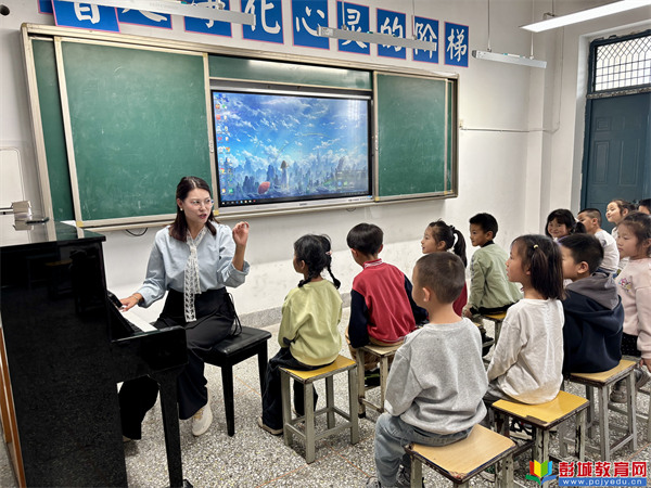 對(duì)于歌曲的每一句歌詞,她都耐心講解,并配上精心設(shè)計(jì)的簡(jiǎn)單手勢(shì)舞,幫助孩子們記憶和理解。孩子們學(xué)得津津有味,時(shí)而側(cè)耳傾聽(tīng),時(shí)而放聲跟唱,時(shí)而揮舞著小手,整個(gè)課堂變成了一個(gè)歡樂(lè)的音樂(lè)海洋。