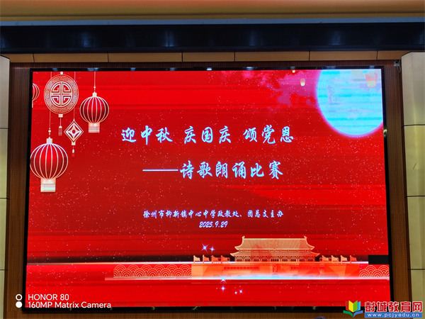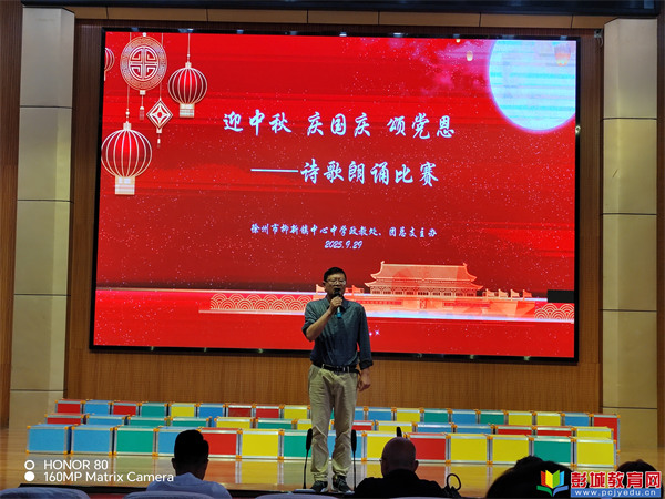 為慶祝中國人民抗日戰(zhàn)爭暨世界反法西斯戰(zhàn)爭勝利80周年,激勵學(xué)生積極向上、樂觀進取,喜迎國慶中秋,徐州市柳新鎮(zhèn)中心中學(xué)舉辦“迎中秋慶國慶頌黨恩”詩歌朗誦比賽活。活動由政教活動由政教處、團總支舉辦,政教處主任閆西斌主持。