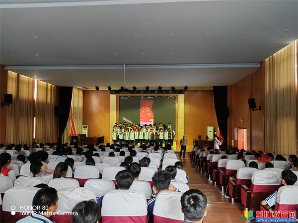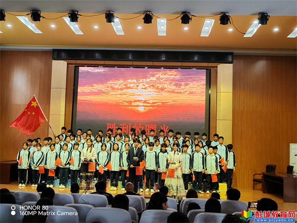 9月29日下午1點30分,學(xué)校報告廳,全體起立,奏唱國歌。德育副校長沈中洋、九年級主任李建華先后致辭鼓勵祝賀加油!