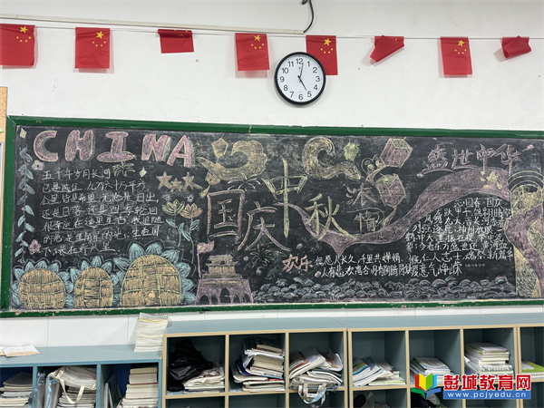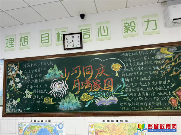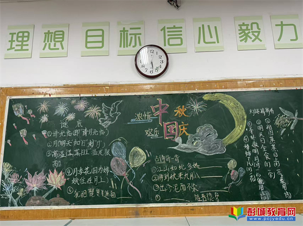 “一筆一劃繪山河,一版一報映初心”。作為雙節(jié)主題活動的開篇,學校率先啟動黑板報評比活動。接到任務后,各班師生迅速行動,從主題構思、版面設計到內容填充,每一個環(huán)節(jié)都凝聚著創(chuàng)意與匠心。有的班級以 “大國華誕” 為核心,用鮮艷的五星紅旗、巍峨的天安門圖案展現(xiàn)祖國壯麗風貌,輔以 “新中國成立歷程”“時代發(fā)展成就” 等文字,讓版面成為鮮活的 “愛國教科書”;有的班級則聚焦 “中秋團圓”,通過手繪玉兔、燈籠等傳統(tǒng)元素,搭配中秋詩詞、謎語等,傳遞中華優(yōu)秀傳統(tǒng)文化的魅力。在連續(xù)幾天的創(chuàng)作中,同學們分工協(xié)作,查資料、練繪畫、寫板書,不僅鍛煉了審美能力與動手實踐能力,更在搜集素材、設計內容的過程中,加深了對祖國歷史、節(jié)日文化的理解,讓愛國主義情懷在筆尖流淌、在版面上綻放。