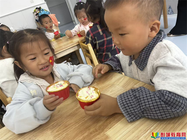 小班的寶貝們雖然是幼兒園里最小的成員,在老師的耐心引導(dǎo)和幫助下,他們的愛國熱情絲毫不減,開啟為“祖國媽媽”裝飾生日蛋糕的奇妙旅程。用稚嫩的小手小心翼翼地拿起裱花袋,每一個(gè)歪歪扭扭的線條都飽含著對祖國媽媽最真摯的愛。撒上閃閃發(fā)光的彩糖,一個(gè)個(gè)充滿童趣的“生日蛋糕”誕生了。他們舉起自己的作品,臉上洋溢著無比自豪和喜悅的笑容,用甜甜的聲音喊著:“祖國媽媽,生日快樂!”這溫馨的一幕被鏡頭記錄下來,匯聚成小班最珍貴的節(jié)日獻(xiàn)禮?;顒?dòng)不僅鍛煉了孩子們的手部精細(xì)動(dòng)作,更在他們幼小的心靈中深深埋下了愛國主義的種子。