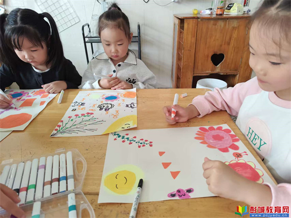 中二班的活動(dòng)充滿力量感,孩子們高唱《強(qiáng)軍戰(zhàn)歌》,挺拔的小身姿展現(xiàn)出對(duì)軍人的崇敬;“月球上的兔子”創(chuàng)作活動(dòng)更是讓孩子們腦洞大開,黏土在孩子的手中變成了一個(gè)個(gè)靈動(dòng)的小玉兔。中三班則以經(jīng)典紅歌《紅星閃閃》喚醒紅色記憶,孩子們跟著旋律拍手跟唱,隨后專注投入創(chuàng)意美術(shù)《中秋月餅》的拓印,一塊塊“專屬月餅”承載著對(duì)中秋的期待。