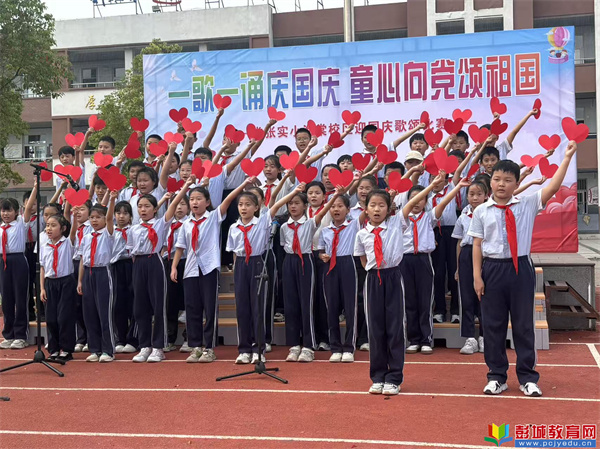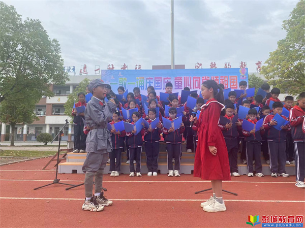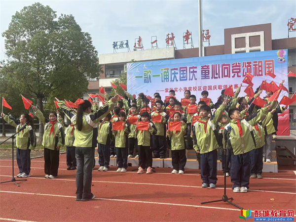 為慶祝中華人民共和國(guó)成立,厚植學(xué)生愛(ài)國(guó)情懷,9月29日下午,棠張實(shí)小海棠校區(qū)在學(xué)校操場(chǎng)開(kāi)展“一歌一誦慶國(guó)慶 童心向黨頌祖國(guó)”主題活動(dòng)。全體師生齊聚一堂,以紅色歌曲傳唱、愛(ài)國(guó)詩(shī)篇朗誦的形式,共慶國(guó)慶,歌頌祖國(guó)。