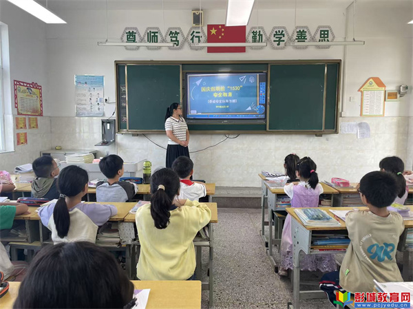 各班級(jí)通過(guò)主題班會(huì)對(duì)學(xué)生進(jìn)行國(guó)慶安全教育。推行“1530”安全教育模式,即每天放學(xué)前“1分鐘”安全教育;每周末放學(xué)前“5分鐘”安全教育;節(jié)假日、放假前“30分鐘”安全教育。