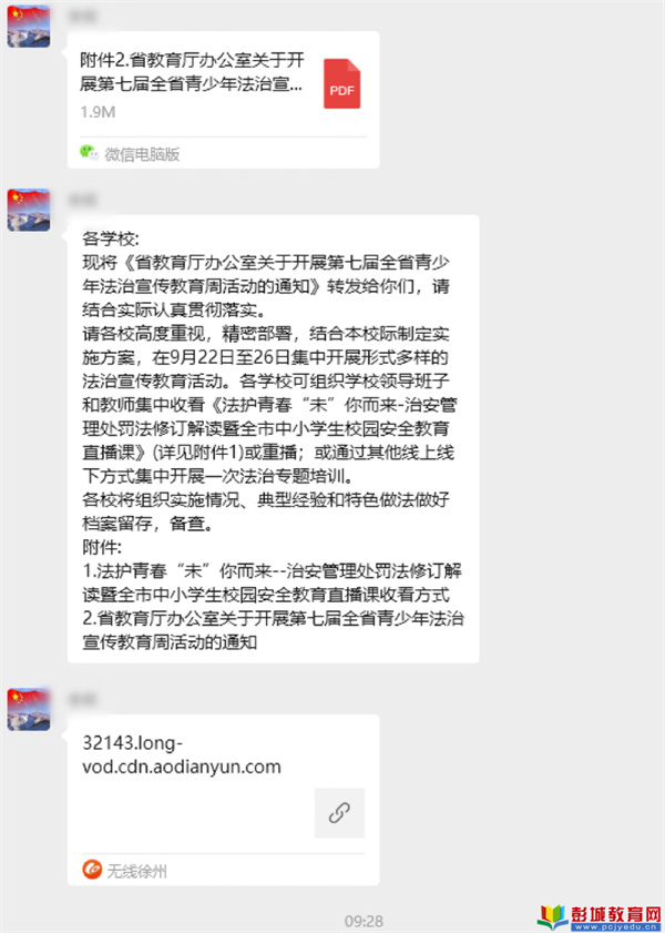 教師是校園普法的主力軍。為提升全體教師的法治素養(yǎng)和育人能力,我校組織全體教師于9月25日,以教研組為單位或在各自工位,集中收看了《法護(hù)青春“未”你而來》法治直播課。