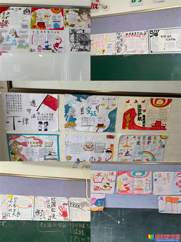 學(xué)校在小學(xué)和初中年級舉辦了“法治在我心中”主題手抄報(bào)評選活動。同學(xué)們熱情高漲,積極參與,他們用手中的畫筆和絢麗的色彩,將自己對法律知識的理解、對公平正義的追求描繪成一幅幅精美的手抄報(bào)。這一活動不僅鍛煉了學(xué)生的創(chuàng)造與審美能力,更將抽象的法治概念轉(zhuǎn)化為生動的藝術(shù)形象,實(shí)現(xiàn)了法治教育的趣味性與實(shí)效性相統(tǒng)一。