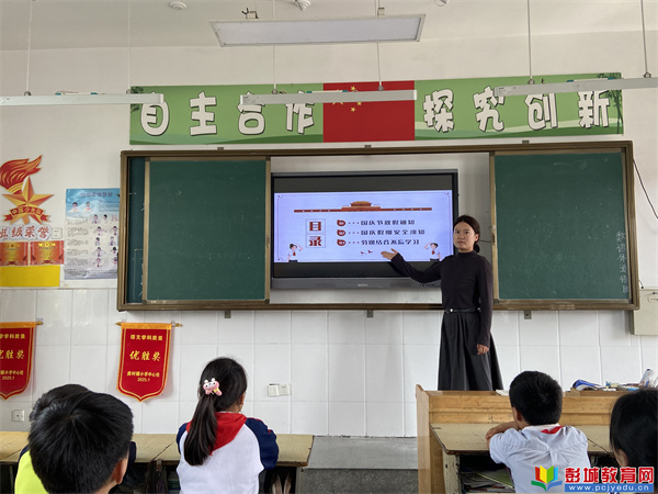 秋光正好,國慶將至。9月29日房村鎮(zhèn)中心小學(xué)內(nèi)開展國慶假期安全主題教育班會(huì),為即將到來的長假保駕護(hù)航。各班班主任運(yùn)用精心準(zhǔn)備的教學(xué)材料,通過圖文并茂的演示課件,為學(xué)生們帶來了一堂內(nèi)容豐富、講解生動(dòng)的安全教育課。(2345)