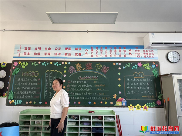 在國防教育月和中華人民共和國成立76周年之際,為營造濃厚的國慶氛圍,引導(dǎo)學(xué)生厚植愛國情懷,近日,漢王鎮(zhèn)北望小學(xué)組織各班級(jí)同步開展 “慶國慶” 主題黑板報(bào)創(chuàng)作與班級(jí)文化墻布置活動(dòng)。全校師生以黑板為畫布、以墻面為載體,將對(duì)祖國的祝福與熱愛融入一幅幅生動(dòng)作品、一面面特色文化墻中,讓紅色文化在校園里煥發(fā)新的活力,讓班級(jí)角落成為愛國教育的鮮活陣地。
