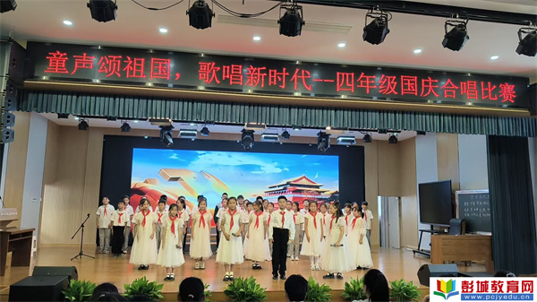 四年級學(xué)子于校內(nèi)四樓報告廳齊聚,以“童聲頌祖國,歌唱新時代”為旨,用激昂旋律抒發(fā)新時代少年的豪情。