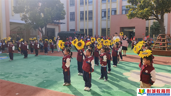 活動尾聲,全場師生揮舞著小國旗與向日葵花束,共同唱響《我愛我的祖國》。紅色的國旗、金色的花束在陽光下交相輝映,孩子們的笑臉與“我愛你祖國”的氣球造型構成了最美的畫面。那歌聲里,有童真的純粹,更有對祖國最熾熱的情感。這一刻,愛國不再是抽象的詞匯,而是化作了旋律、笑容與行動,深深烙印在孩子們的記憶里。