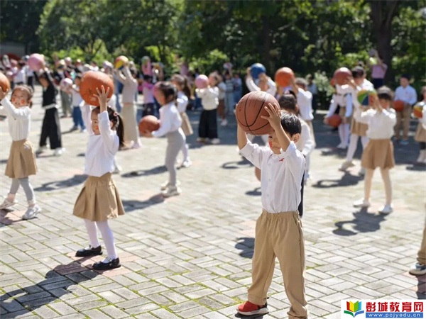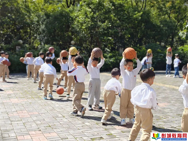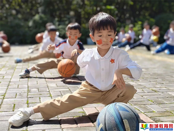 操場上,孩子們精神抖擻地展示著動感籃球操。伴隨著歡快的音樂,小小身影運球、傳球、隊形變換,動作整齊劃一,展現(xiàn)了幼兒蓬勃的朝氣與活力?;@球在孩子們手中跳躍,自信在他們臉上綻放。