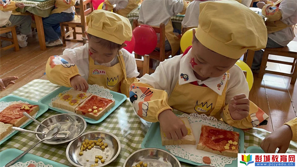 孩子們在老師指導下制作特別的國旗吐司。他們小心翼翼地將番茄醬涂抹在吐司上,擺出五星紅旗的圖案。將食育與愛國教育相結(jié)合,讓孩子們在動手實踐中加深了對國家象征的認知,既培養(yǎng)了他們的動手能力,又激發(fā)了愛國情感。