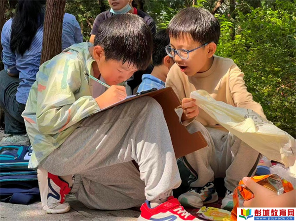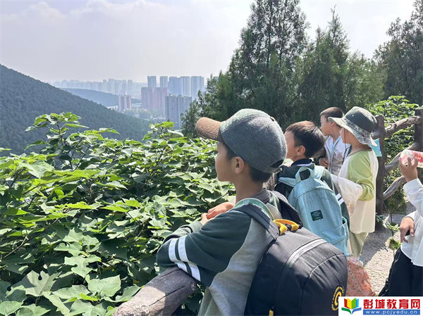 山頂?shù)挠^景臺(tái)是俯瞰美景的最佳地點(diǎn)。當(dāng)同學(xué)們終于登上山頂,微風(fēng)拂面而來(lái),整個(gè)城市的景色盡收眼底?!翱?!那是我們學(xué)校附近的馬路!”“那邊的高樓好高呀!”大家興奮地指著遠(yuǎn)方,成就感在心中悄然綻放。老師趁機(jī)引導(dǎo)大家思考:“為什么子房山能看到這么遠(yuǎn)的景色?”“秋天的天空為什么這么藍(lán)?”一個(gè)個(gè)問(wèn)題讓研學(xué)之旅從“看風(fēng)景”變成了“學(xué)知識(shí)”,讓同學(xué)們?cè)谛蕾p美景的同時(shí),也收獲了地理與科學(xué)的小常識(shí)。