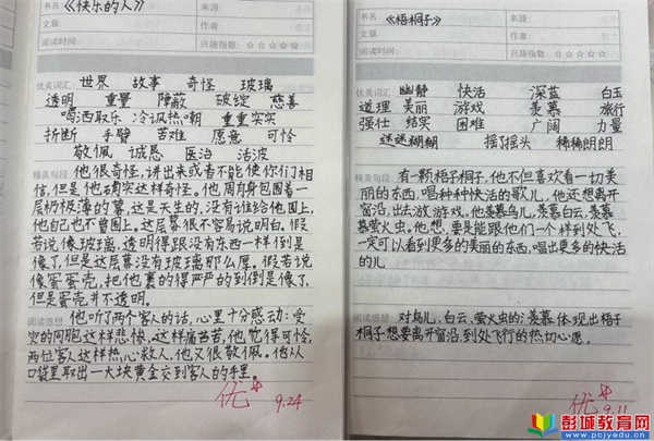 讀寫日記是連接“閱讀”與“表達(dá)”的橋梁,學(xué)生們?cè)谌沼浿姓浾n文優(yōu)美段落、記錄課外閱讀感悟,將“讀”的收獲轉(zhuǎn)化為“寫”的素材,激發(fā)學(xué)生讀寫的興趣,讓讀寫成為學(xué)生樂于堅(jiān)持的日常。