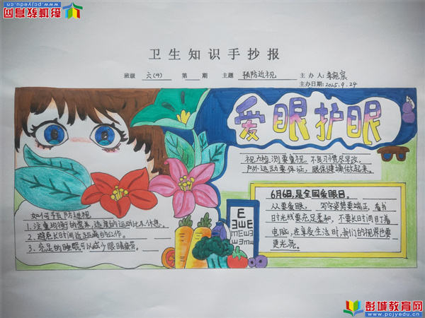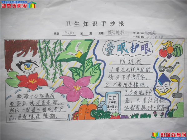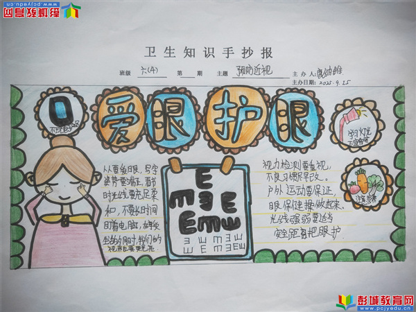 最后,我校舉行了“愛護(hù)眼睛,預(yù)防近視”手抄報(bào)比賽,同學(xué)們積極參與,繪畫出了很多優(yōu)秀手抄報(bào)。
