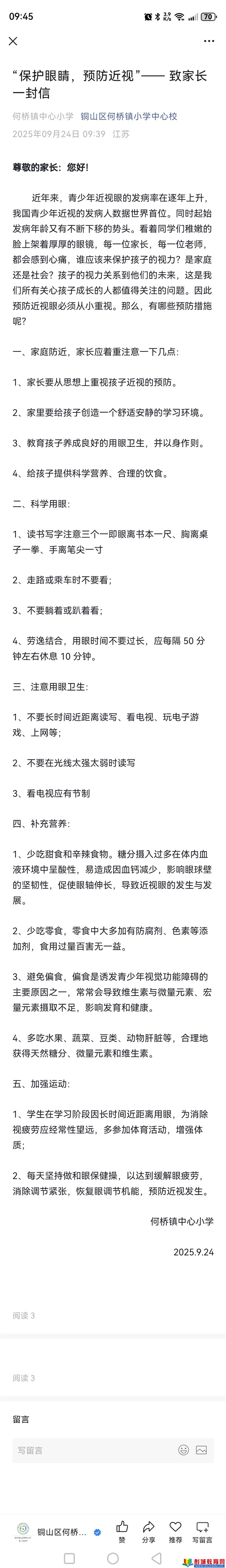 會(huì)議結(jié)束后,為進(jìn)一步加深學(xué)生的眼健康意識(shí),各班向?qū)W生分發(fā)了預(yù)防近視遠(yuǎn)傳單,并在公眾號(hào)上發(fā)布了預(yù)防近視的一些知識(shí)。這些活動(dòng)使學(xué)生們更加了解了保護(hù)眼睛的重要性,并學(xué)會(huì)了一些實(shí)用的眼保健知識(shí)。