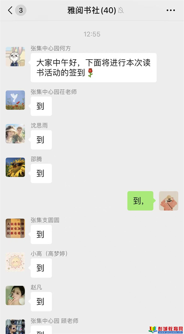 中午12:55,何方老師發(fā)起活動(dòng)簽到,群內(nèi)教師紛紛響應(yīng),以“到”字接龍,迅速營造出積極的學(xué)習(xí)氛圍。